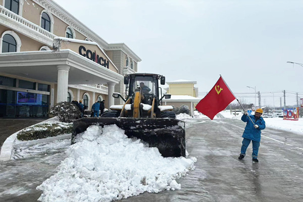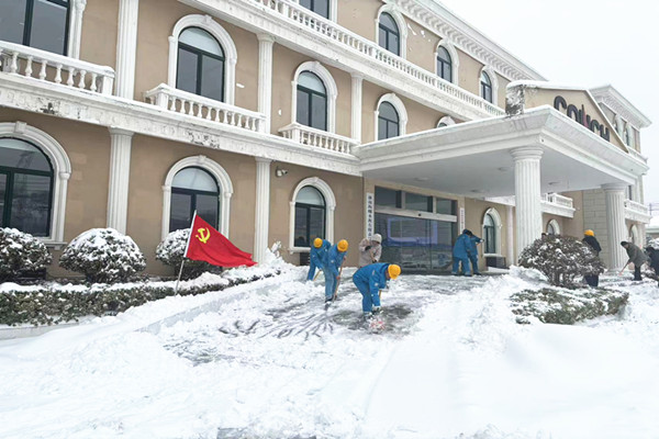 公司廠區(qū)道路、碼頭、辦公樓前隨處可見(jiàn)黨員、團(tuán)員“全副武裝”,拿著鐵鍬、鐵鏟、掃帚等“嚓嚓嚓”“咔咔咔”。大家不畏嚴(yán)寒、干勁十足,全力清除道路積雪,保障安全出行。在迎風(fēng)飄揚(yáng)的黨旗下,他們忙碌的身影,構(gòu)成了雪中一道靚麗的風(fēng)景線。