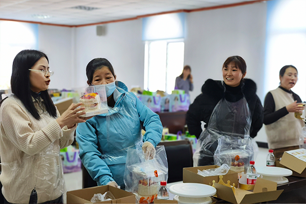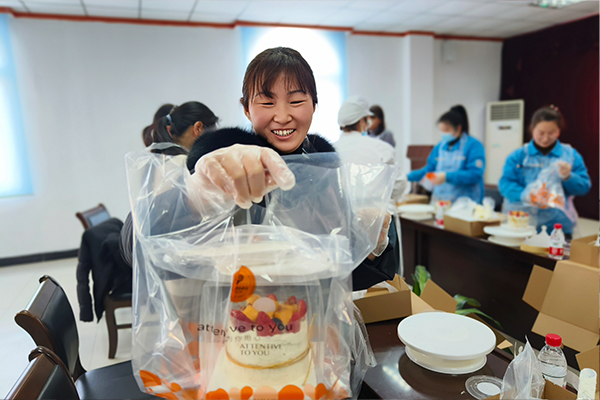 蛋糕做完,一掃剛剛落針可聞的靜謐,歡快喜悅的氛圍在姑娘們笑鬧的言語中炸了開來:“前年做瑜伽,去年學插花,今年做蛋糕手拿把掐,輕輕一晃,才藝多的我忍不住自夸……”、“你望望,還是胡雨會夸自己,我就低調多了,就只夸蛋糕,我這個蛋糕是全廠最靚的仔”、“快,誰來打個光,我要拍蛋糕發抖音……”歡聲、笑語、嬉鬧,楚州海螺“三.八”婦女節活動在此刻被推向了高潮。