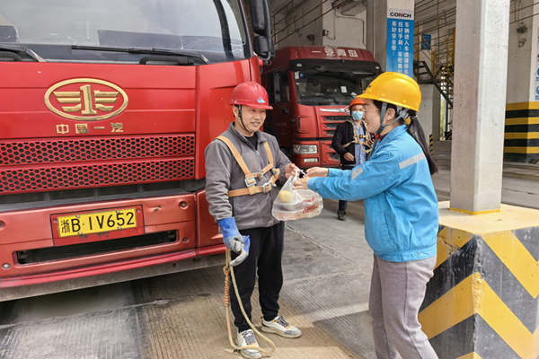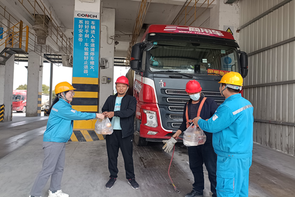 “師傅,您辛苦了,這是我們公司提供的免費午餐,路途遙遠,還請您注意安全……”3月27日中午,浙江象山海螺的員工們把一份份熱騰騰的飯菜送到了正在等待裝車的駕駛員手中。