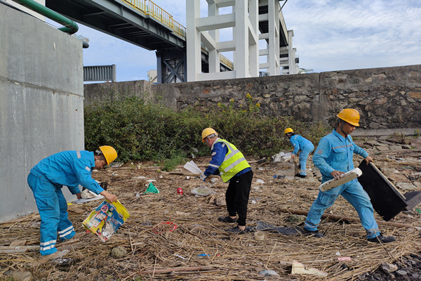 2024年10月29日,象山海螺組織員工赴公司來到防波堤段海岸線區(qū)域,全面清理從海上及海岸線周邊養(yǎng)殖海域漂來的塑料瓶、包裝袋、海藻、泡沫、養(yǎng)殖用竹竿、地籠、漁網(wǎng)等垃圾。