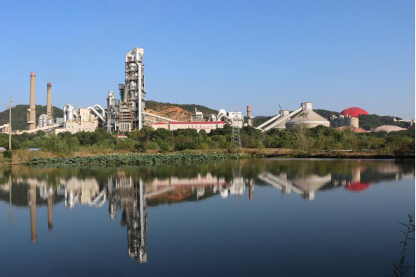 秋高氣爽,白鴿翱翔,紅色廠區(qū)與綠樹(shù)相映成趣
