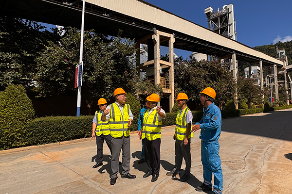 張社平總領事一行先后參觀了礦山、窯廣場、水泥發運區域、化驗室和中控室,公司總經理閻加軍向其詳細介紹了公司礦山開采、水泥生產工藝、質量控制等方面情況。